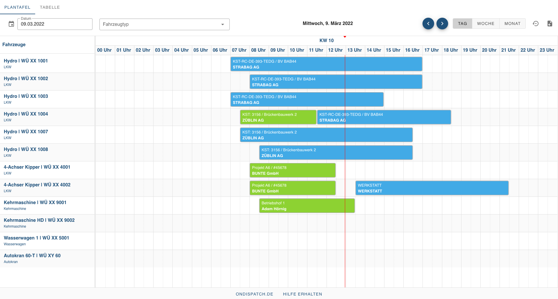 Disposition auf der digitalen Plantafel. Für alle einbezogenen Mitarbeiter verfügbar