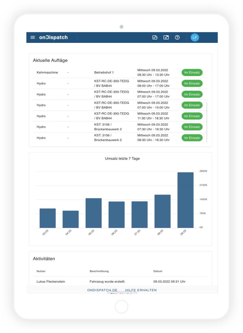 Mit onDispatch arbeiten Sie digital, erhöhen Ihren Umsatz und steigern Ihre Liquidität. Disponieren, Lieferscheine unterschreiben und Rechnungen versenden – zentral über eine Software.