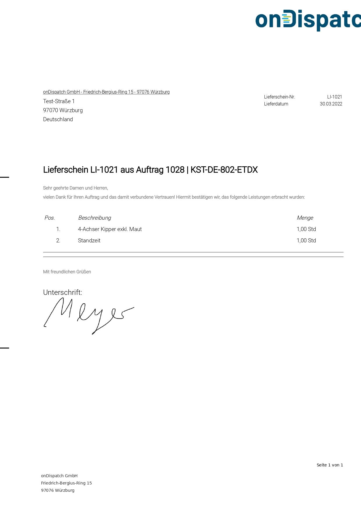 Verzichten Sie auf Lieferscheinblöcke und handschriftlich verfasste Lieferscheine. Mit der onDispatch Fahrer–App lassen Sie Ihre Kunden auf dem Smartphone oder Tablet des Fahrers unterschreiben. Im Hintergrund wird der Lieferschein automatisch generiert und Ihrem Kunden per Mail zugeschickt. Nicht nur Ihr Kunde erhält den Lieferschein sofort, auch Ihre Disponenten im Büro können den Lieferschein Sekunden nach der Unterschrift abrufen und sehen, wann ein Auftrag abgeschlossen wurde.