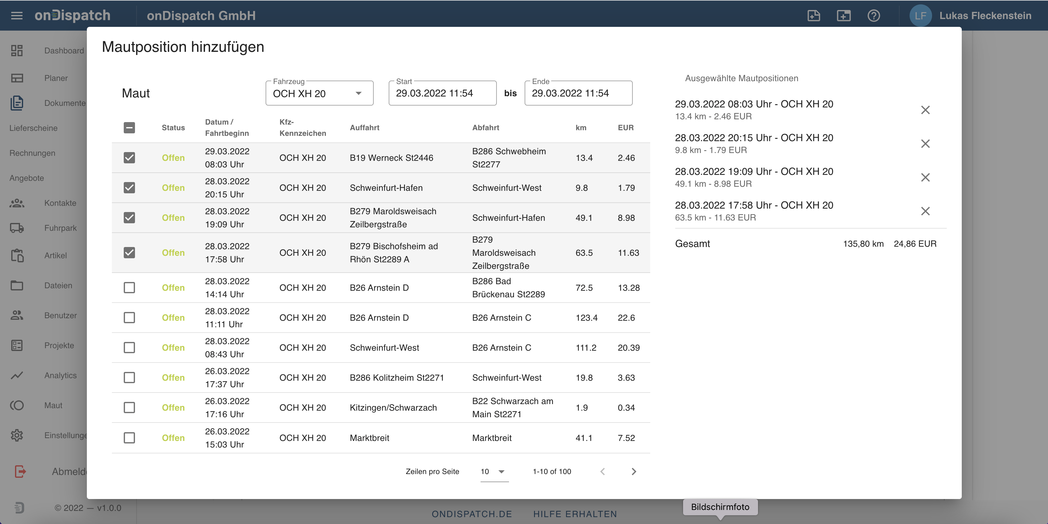 Rufen Sie automatisiert Ihre Mautgebühren ab und verknüpfen diese mit Ihren Aufträgen. So gelangt ohne Mühe und Suchen die richtige Maut auf der Rechnung.